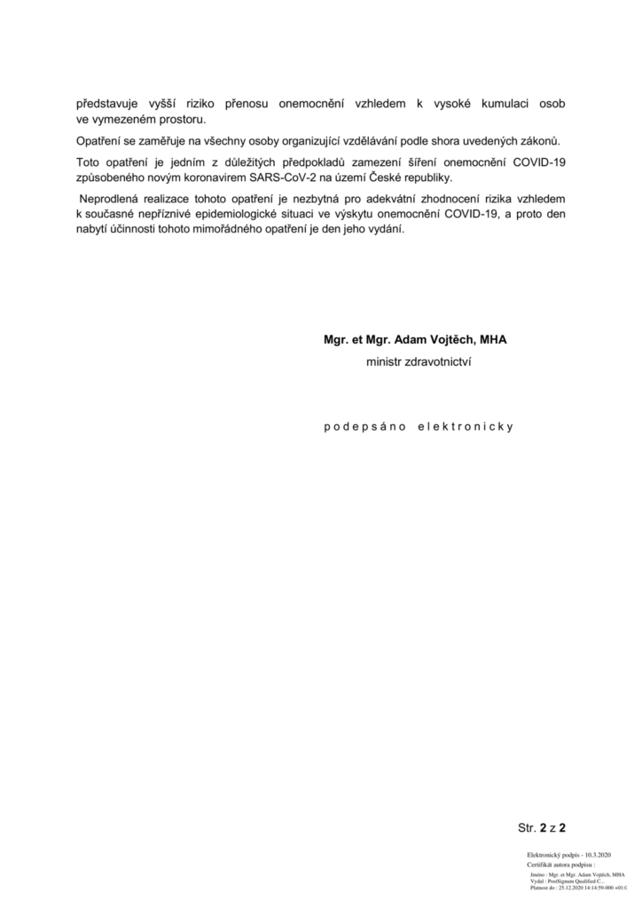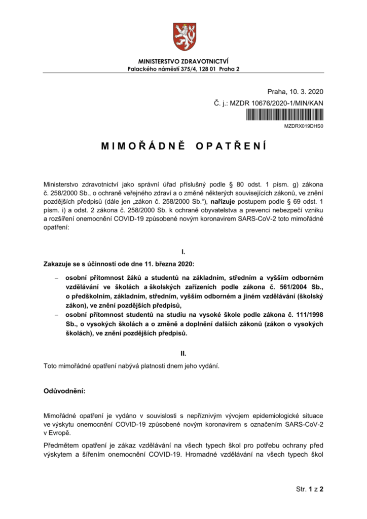 Níže přikládáme oficiální prohlášení ministerstva zdravotnictví o uzavření všech škol.