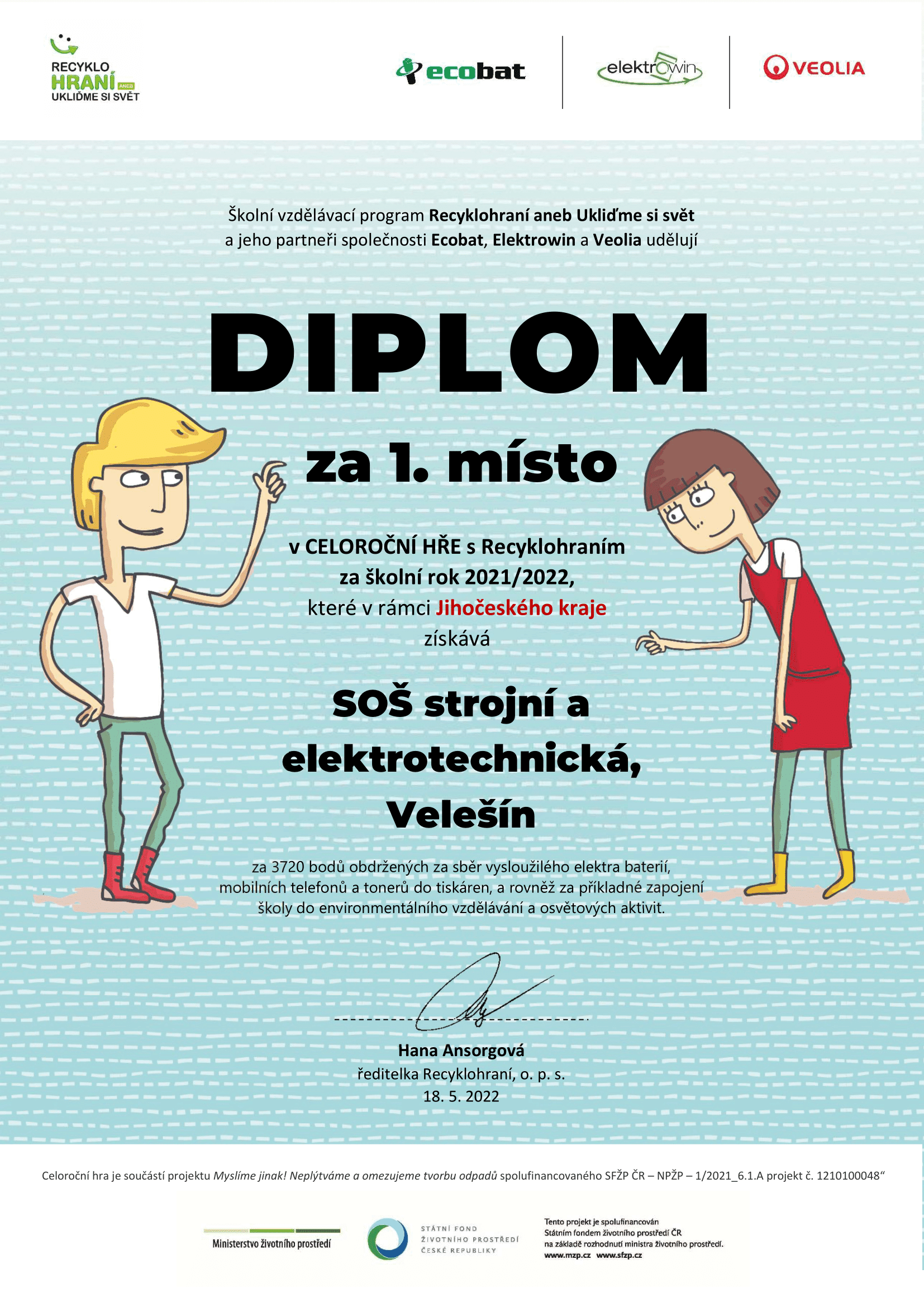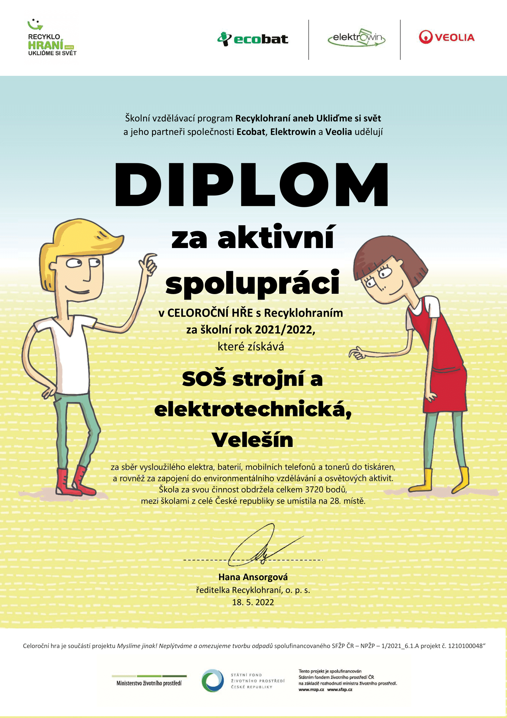 Naše škola se dlouhodobě věnujete environmentálnímu vzdělávání, výchově a osvětě. Od 23. srpna 2021 do 15. května 2022 probíhala celorepubliková hra „Recyklohraní aneb ukliďme svět“. Základní princip spočíval v tom, že školy zapojené do vzdělávacího programu dostávaly body za sběr vysloužilého elektra, baterií, mobilních telefonů a tonerů do tiskáren, a rovněž za zapojení do osvětových aktivit programu Recyklohraní.